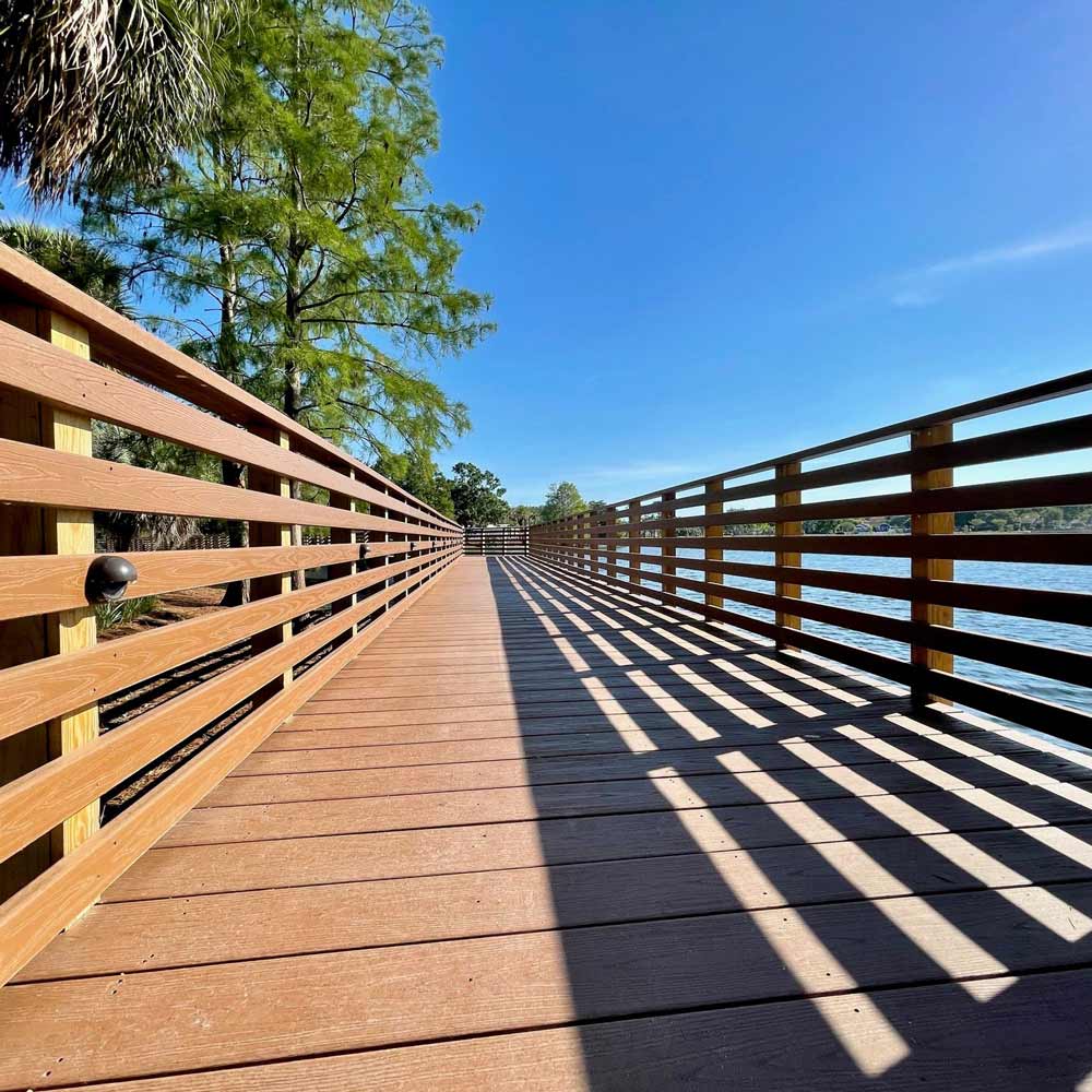 We build custom docks, decks, steps, walkways, gazebos, and fences made of WEARDECK™ GLAS-POWERED™ composite lumber. This enhanced wood-free design holds up exceptionally well under heavy loads — with durability that lasts a lifetime.